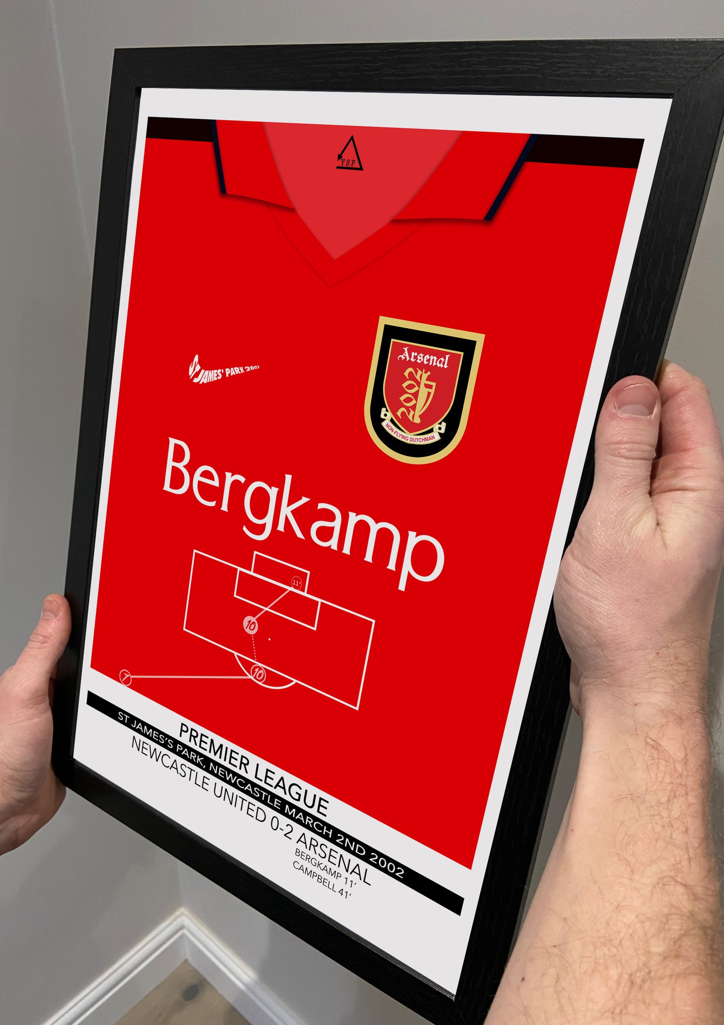 Bergkamp scored one of the all time memorable goals in the premier league when he left the Newcastle defender for dead and spun round the other side of him to slot it away. That touch….did he mean it? Either way, it was a thing of a beauty by the Dutchman. This Memorable Match Shirt Print celebrates that iconic goal in a unique print.
