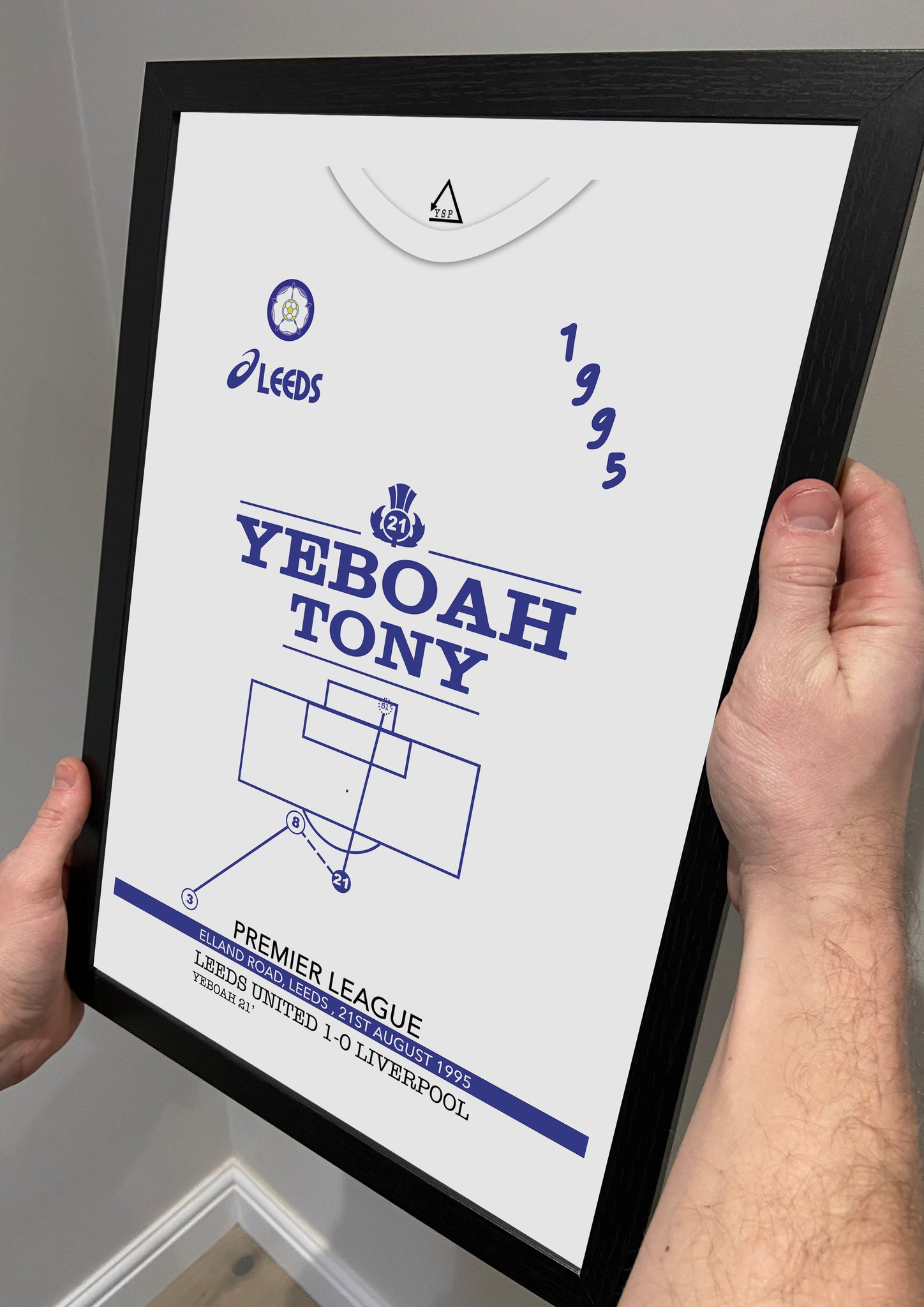 Yeboah v Liverpool 1995 Memorable Match Shirt Print celebrates the unforgettable moment of this iconic screamer in a unique print.